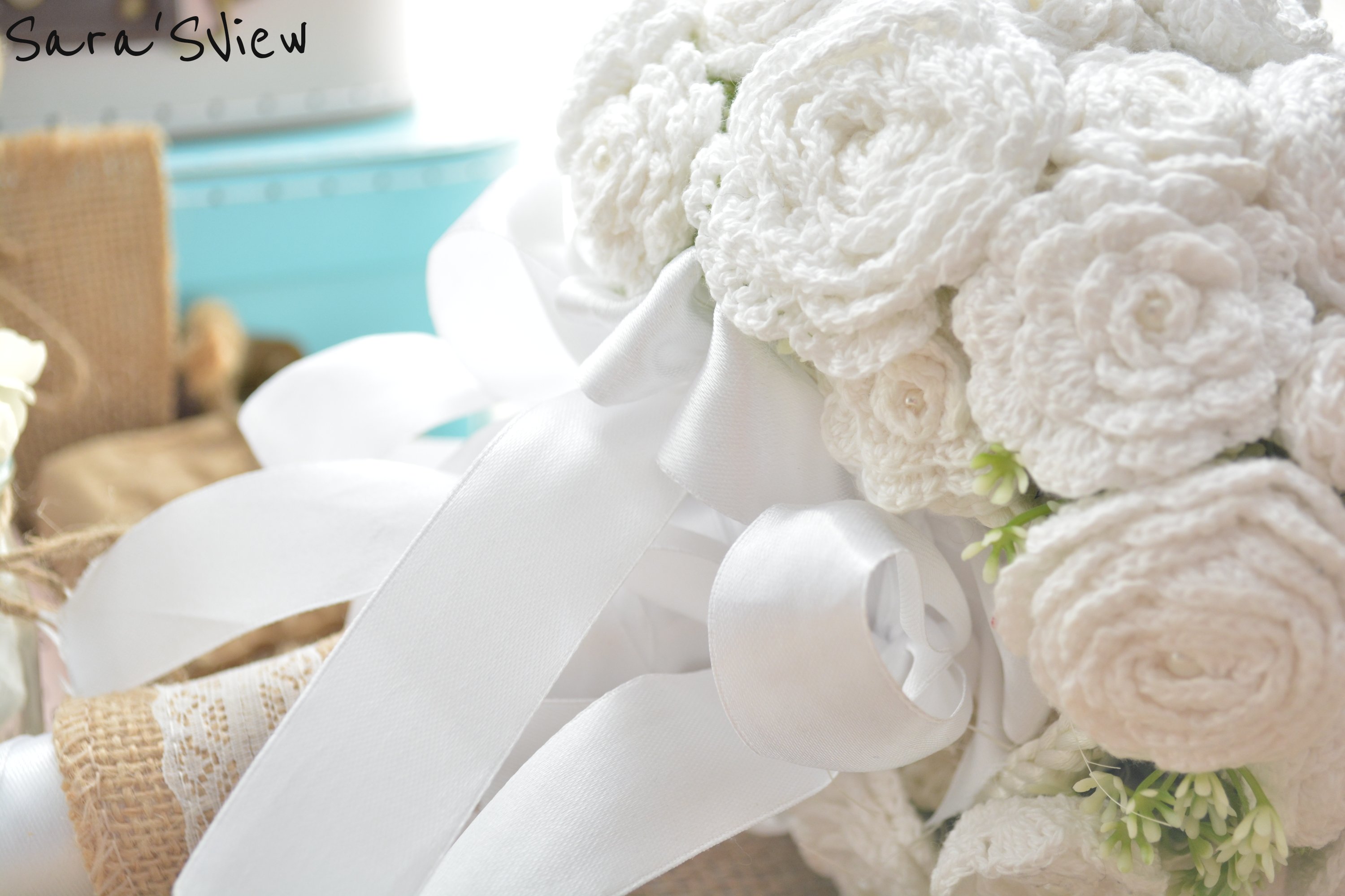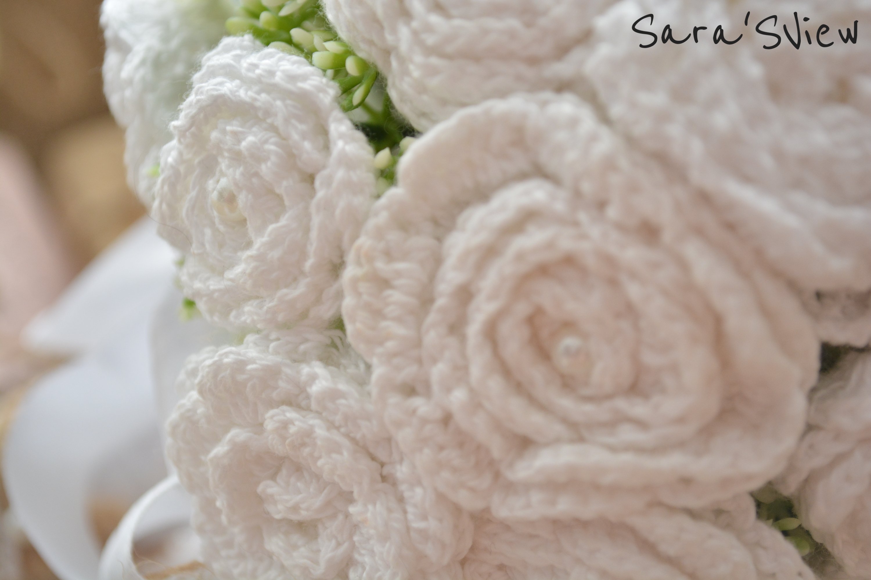 My mother’s magic hands gave us the best flowers, crocheted white beautiful blooms. She also created buttonholes and bouquets (bridal bouquet, bridesmaids, groom, best man and bride’s father) and even the flowers decorating my hair in a lovely harmony with the bride dress.
