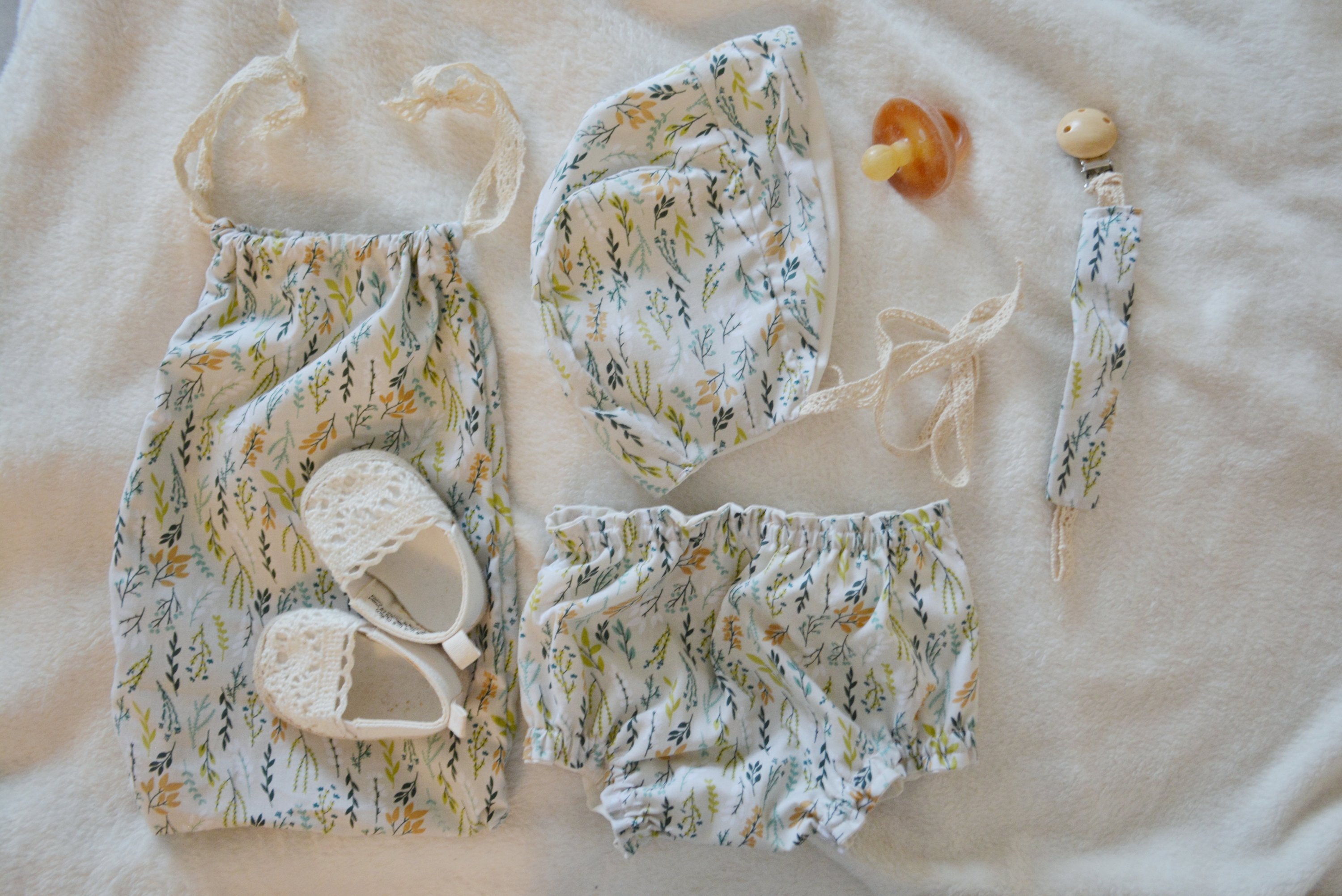 Then I added a sun bonnet, a matching bloomer, and a pacifier clip.