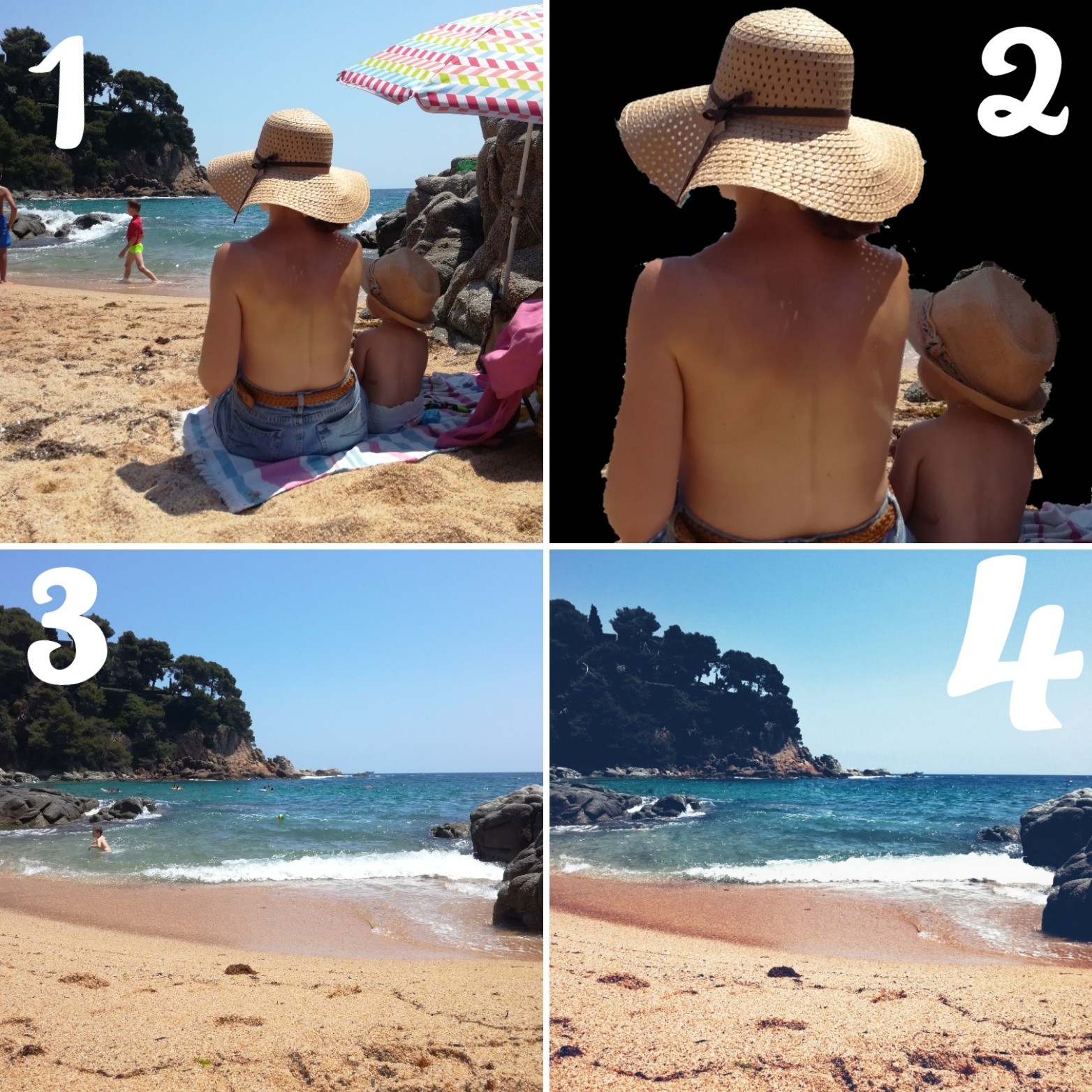 My first try was to mix two pictures of our last weekend at the beach. Here you have the final result: