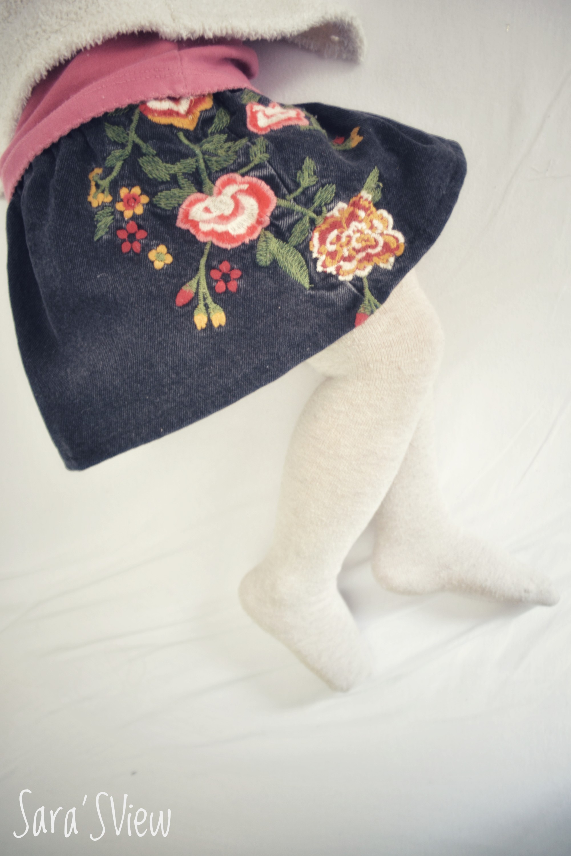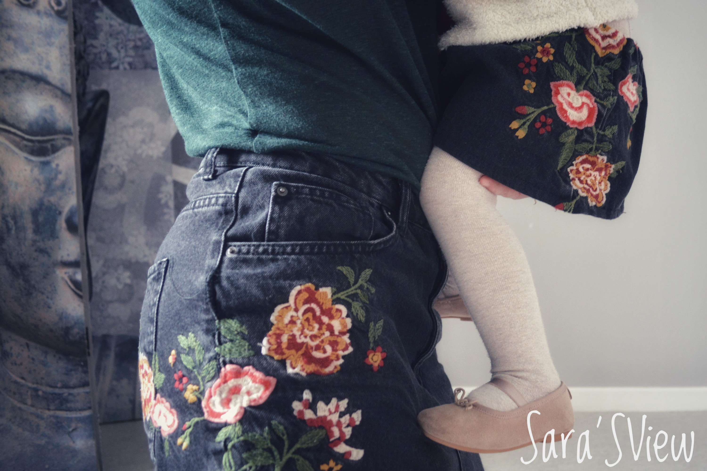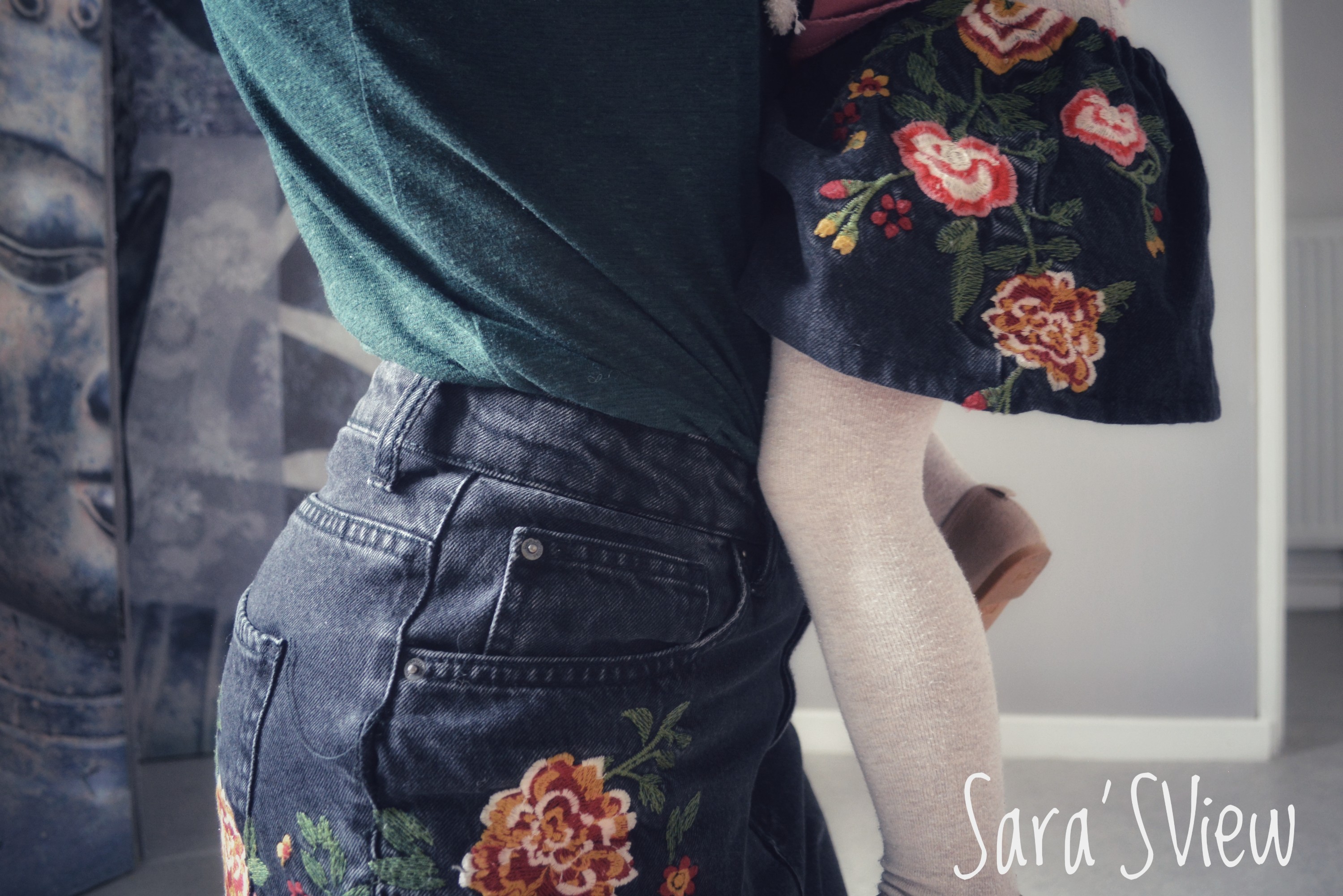 So here are some pictures of two skirts (one for me and one for my daughter) that I made with one embroidered old jean.